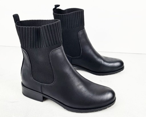 NOWE CZARNE BOTKI BUTY SZTYBLETY Z ELASTYCZNYMI WSTAWKAMI