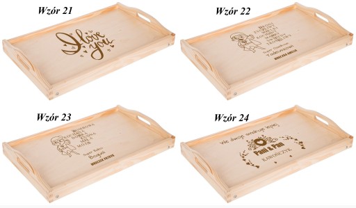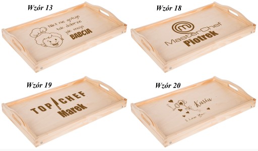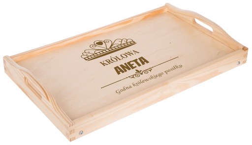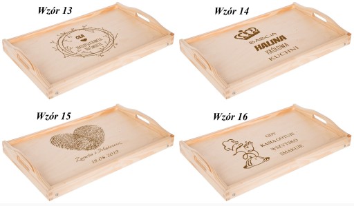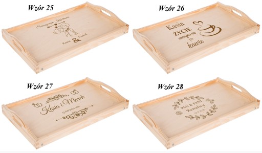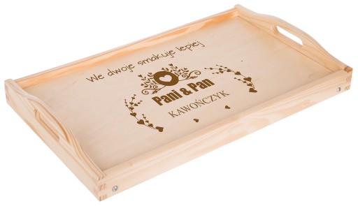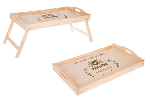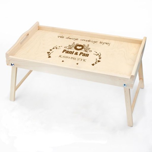 Na tej aukcji prezentujemy grawerowany drewniany stolik . Z pewnością sprawdzi się przy serwowaniu dań i przypadnie do gustu przyszłemu właścicielowi. Szczególnie, że mogą Państwo umieścić na niej własny tekst taki jak imiona czy datę. Świetny pomysł na prezent dla pasjonatów kuchni i dla zakochanych. Dla ułatwienia mogą Państwo wybrać jeden z poniższych wzorów lub przesłać swój pomysł. Drewniana deska z oryginalnym tekstem rozbawi każdą osobę i sprawdzi się jako prezent na każdą okazję.