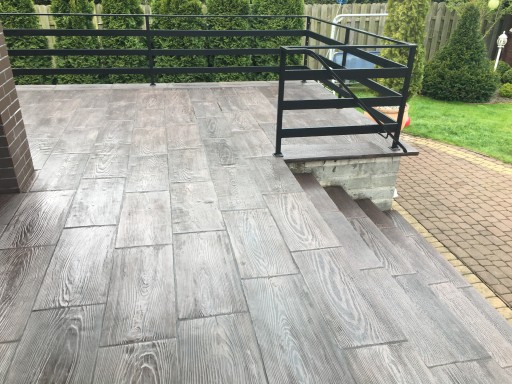 Firma Concretevisions- producent płyt tarasowych oferuje betonowe płyty tarasowe o strukturze drewna. Wymiary 75x33x4 cm (tolerancja wymiarowa +/- 5mm) - nowe- oryginalne- niespotykane wcześniej wzory wykonane przez nas od podstaw ze starannością o najdrobniejsze szczegóły. Wymiar idealny do budowy stopni schodowych a także całych powierzchni tarasu. Na metr kwadratowy wchodzi 4,05 szt płyt. Płyty wykonujemy w kolorach; Antracyt, Szary, Ciemny brąz, Średni brąz, Beżowy ciemny- wszystkie oprócz antracytu z czarnymi przebarwieniami słojów. Aukcja dotyczy płyt w kolorze ciemnego brązu z czarnymi przebarwieniami słojów. Informujemy o możliwości występowania różnych odcieni kolorystycznych płyt w danym kolorze. Należy pamiętać, że jest to beton dekoracyjny i różnice w kolorach dodają atrakcyjności i realizmu. Nowa linia płyt charakteryzuje się dużą wyrazistością słojów i jednocześnie starannością wykończenia. Przyjemna w dotyku struktura słojów, duża różnorodność wzorów i bogata-rozszerzona kolorystyka sprawia, że są one propozycją płyt tarasowych dla najbardziej wymagających. Płyty strukturyzowane nie tylko na górnej płaszczyźnie ale również po bokach co umożliwia wykorzystanie ich w wielu innych aranżacjach np. jako obrzeża tarasu, obrzeża ogrodowe, do oddzielania rabat, budowy donic, chodników, ścieżek i dojść ogrodowych a także schodów. Zastosowanie ogranicza jedynie nasza wyobraźnia. Płyty doskonale komponują się z innymi elementami małej architektury i ogrodu wykonywanymi przez nas i dostępnymi w innych naszych ogłoszeniach oraz aukcjach. Staramy się realizować rzetelnie wszystkie zamówienia, dostarczamy bezpośrednio do klienta każdą ilość towaru, począwszy od najmniejszej, a skończywszy na dużych zamówieniach. Płyty są w całości barwione w masie betonowej, po ułożeniu zalecamy impregnację. Zapraszamy do współpracy projektantów, wykonawców i dystrybutorów. Sprzedajemy płyty nie impregnowane, impregnację zalecamy po ułożeniu.