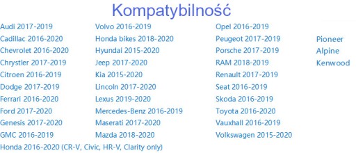 Kompatybilność z 98% samochodów z Carplay- zobacz tabele poniżej.