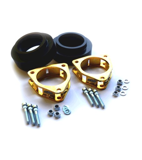 Zestaw do Toyota Rav 4 I, składa się dystansów przednich mcphersonów wraz ze szpilkami, nakrętkami oraz podkładek poliuretanowych tylnych sprężyn. Pasuje do wersji 3 i 5-cio drzwiowej. Przednie dystanse montuje się pomiędzy mcphersona a karoserię pojazdu używając załączonych dłuższych szpilek, do tyłu zakłada się podkładki poliuretanowe na sprężyny.