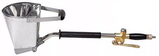 - Materiał wykonania: aluminium (zbiornik), stal nierdzewna (lanca i klamka), tworzywo sztuczne (uchwyty)