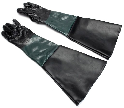- Mocne i wytrzymałe rękawice ochronne do piaskarek