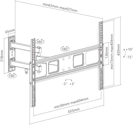 Uchwyty cechujące się solidnym wykonaniem i długoletnią gwarancją (seria BASIC 5-letnią, seria PRO 10-letnią). Zapewniają solidne mocowanie telewizora każdego typu na ścianie, idealnie dopasowują się do Twojego wystroju wnętrza. Uchwyty Goobay są regulowane w niemal każdej możliwej płaszczyźnie: pochył góra/dół, skręt lewo/prawo, odległośc od ściany. W galerii produktu umieszczamy rysunek z wymiarami uchwytu. Poniżej podajemy dokładną specyfikację techniczną.