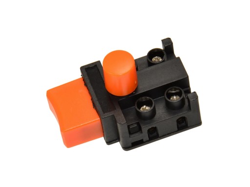 Wyłącznik starego typu do mieszarek Rebir. Nie posiada regulacji obrotów. Wciskany, z przyciskiem bocznym blokady przed przypadkowym włączeniem urządzenia.