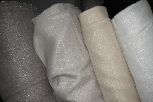 �RODZAJ TKANINY : LEN SYNTETYCZNY BŁYSZCZĄCY Z SREBRNĄ NITKĄ SZRON