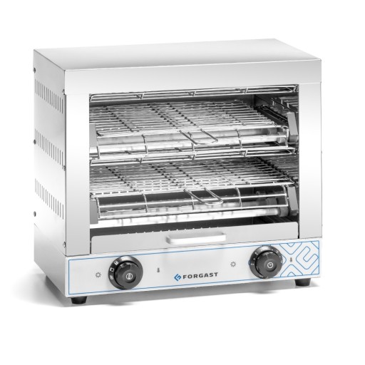 Opiekacz/toster 2-poziomowy marki Forgast idealny do opiekania bułek, kanapek i zapiekanek. Wykonanie - stal nierdzewna.