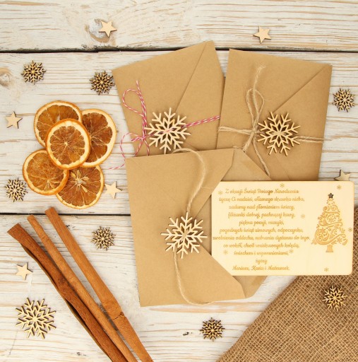 Деревянная рождественская открытка, 12 эко-индивидуальных дизайнов.