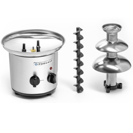 Fontanna do czekolady marki Forgast. Urządzenie jest przeznaczone do rozpuszczania czekolady. Maczanie owoców w płynącej kaskadą czekoladzie jest gwarantowaną atrakcją każdej imprezy.
