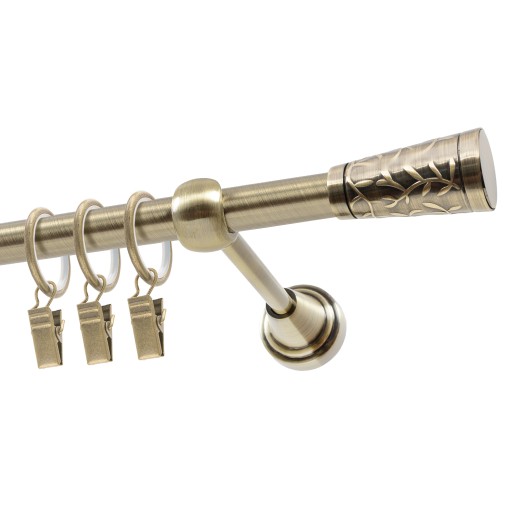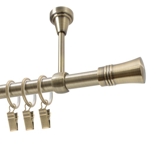 Karnisz o średnicy 19 mm z kółkami. Pojedynczy karnisz doskonale prezentuje się we wnętrzach mieszkalnych. Można go zamontować wszędzie tam, gdzie chce się powiesić firany lub zasłony za pomocą żabek bądź agrafek.