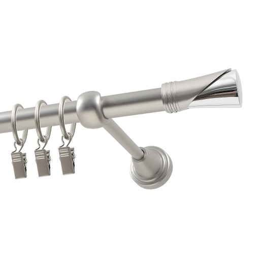 Karnisz o średnicy 19 mm z kółkami. Pojedynczy karnisz doskonale prezentuje się we wnętrzach mieszkalnych. Można go zamontować wszędzie tam, gdzie chce się powiesić firany lub zasłony za pomocą żabek bądź agrafek.