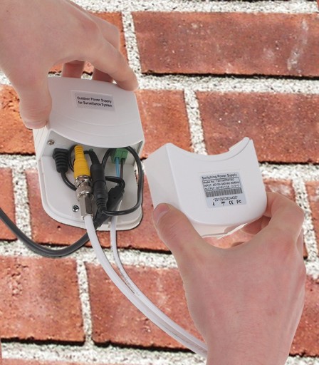 Zasilacz impulsowy firmy Protec w estetycznej bryzgoszczelnej obudowie Przystosowany do montażu zewnętrznego na murze (dla IP53 zalecany jest montaż pod zadaszeniem) Złącze zasilania kamery i wizji mieści się bez problemu wewnątrz obudowy zasilacza Poprawny montaż zasilacza możliwy jedynie w pozycji pionowej, złączami do dołu