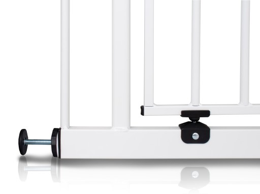 Dostosowalność: Dzięki zawartym w zestawie rozszerzeniom bramka ma zastosowanie do różnych rodzajów drzwi i schodów. Drzwiczki otwierają się w obie strony.