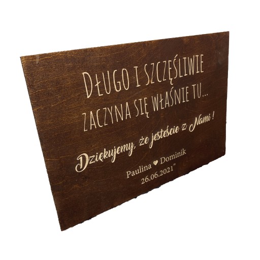 Drewniana tablica powitalna, bejcowana na wesele z grawerem.