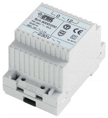 Zasilacz dostarcza energię zasilającą do całego zestawu. Przystosowany jest do montażu bezpośrednio na ścianie lub na szynie DIN.