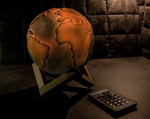 - użycie druku 3D sprawia, że powierzchnia lampki świetnie odwzorowuje powierzchnię Ziemi