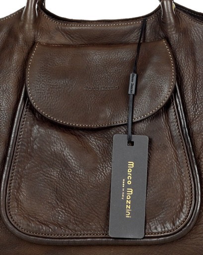 Inspirowani naturą polecamy torebkę skórzaną MARCO MAZZINI z kolekcji handmade. Torebka ponadczasowa wprowadzi swobodę i miejski luz do każdej stylizacji! Nierozłącznie kojarząca się z modą uliczną we Florencji. Klasyczna z fasonu znakomicie sprawdzi się jako torebka do pracy i na uczelnię. Doceniana przez nasze stałe klientki ze względu na wygodę długich rączek pozwalających na noszenie torebki na ramieniu nawet w grubym płaszczu. Praktycznie zaprojektowana kieszeń z przodu sprawia że telefon i klucze będą zawsze do dyspozycji na wyciągniecie Twojej dłoni...Dopełnieniem całości jest wykonanie z wysokiej jakości skóry naturalnej licowej. Torebka jest ręcznie szyta i farbowana. Zmienna struktura lica stanowi element designu wyrobu, świadczący o jej autentyczności. Profesjonalne zabiegi garbarskie sprawiły, że jest aksamitna w dotyku i ultra lekka pomimo swoich dużych gabarytów. Dostęp do pojemnego wnętrza torebki zabezpieczony zamkiem. W środku przegroda na zamek dzieląca wnętrze torebki na dwie części. Dodatkowo jedna zamykana kieszeń na dokumenty i jedna otwarta np.: na telefon. Całość wykończona podszewką. Torebka mieści format A4 i dużo dużo więcej. W zestawie długi pasek.