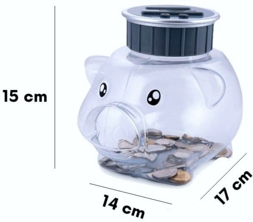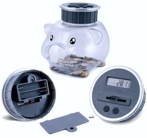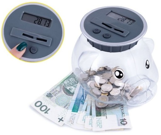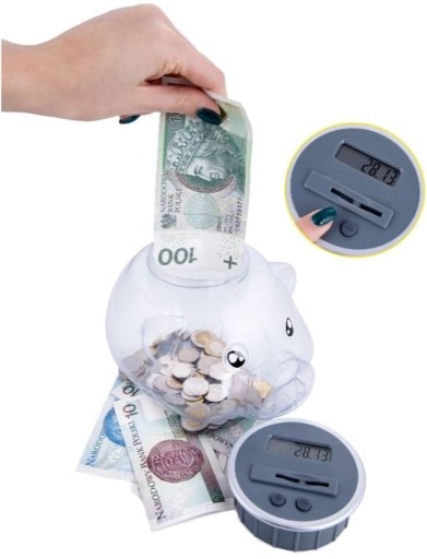 Dzięki liczącej skarbonce będziesz wiedział ile pieniędzy jest w środku, bez konieczności ich wyjmowania.
