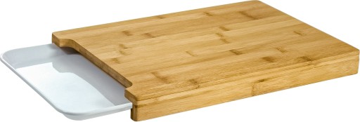 - Praktyczna drewniana deska do krojenia z wysuwanym pojemnikiem.