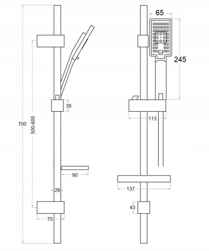 - UCHWYTY: górny i dolny uchwyt o regulowanym rozstawie