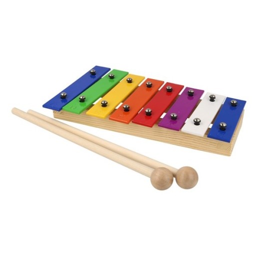 - Dzwonki diatoniczne na drewnianej podstawie. W komplecie z pałeczkami.