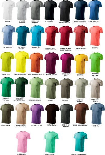DOSTĘPNE KOLORY I ROZMIARY KOSZULEK:
