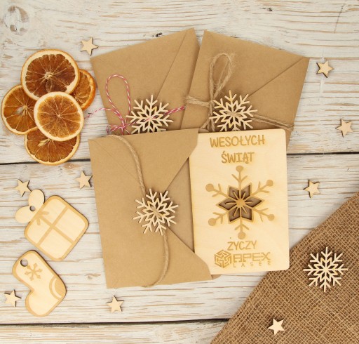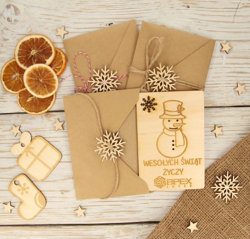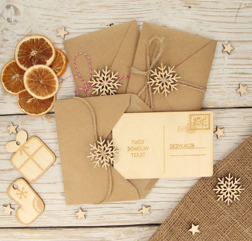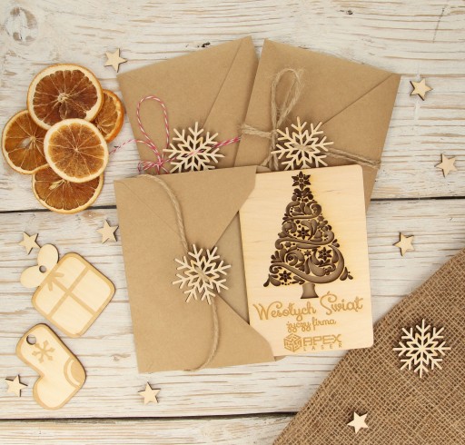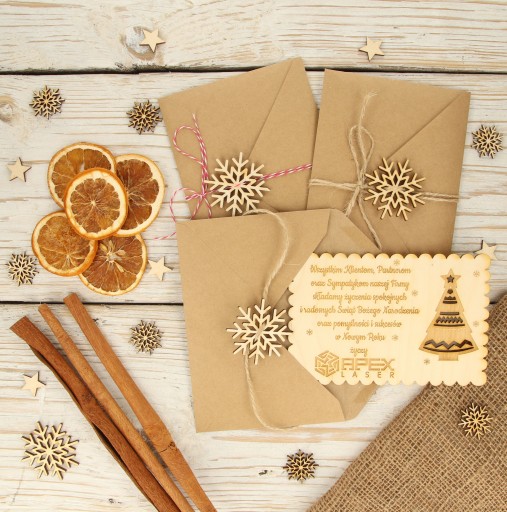 Kartka świąteczna drewniana firmowa LOGO IMIE eko