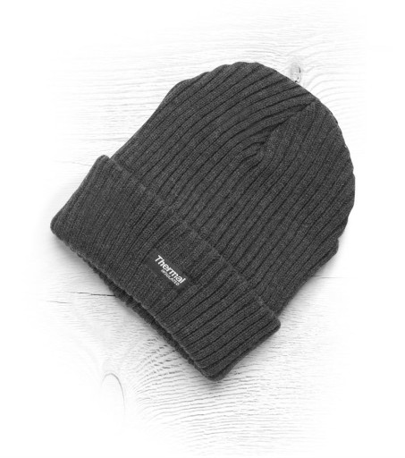 - czapka z dzianiny żebrowanej