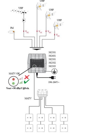 Wyposażony w 3 wejścia: FM-VHF-UHF, gdzie VHF i UHF posiadają dwa zakresy wzmocnienia, natomiast wejście FM posiada jeden stopień wzmocnienia.Wyposażony w filtr przeciw zakłóceniom pochodzącym z LTE oraz ledowy wskaźnik sygnału na wyjściu do detekcji awarii sieci.