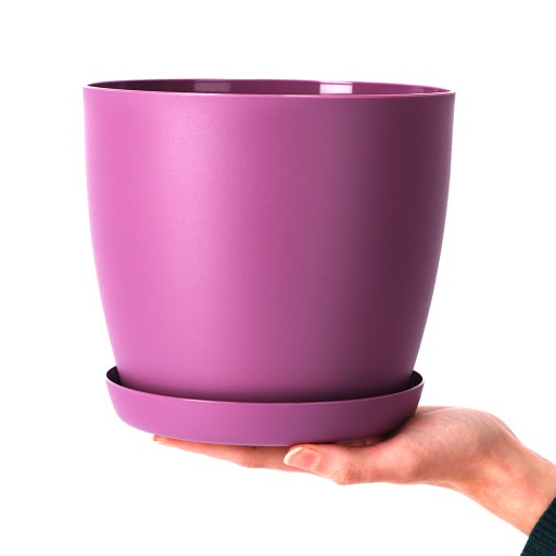 DONICZKA OSŁONKA DONICA 12cm NA KWIATY MATOWA FIOLET PLASTIKOWA PODSTAWKA