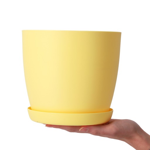 КРЫШКА ДЛЯ ЦВЕТОЧНОГО ГОРШКА ЦВЕТОЧНЫЙ ВАЗ 14см ДЛЯ ЦВЕТОВ МАТОВО-ЖЕЛТАЯ ПЛАСТИКОВАЯ ПОДСТАВКА