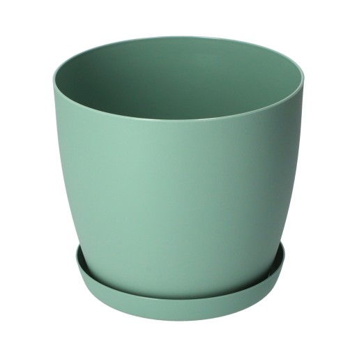 DONICZKA OSŁONKA DONICA 20cm NA KWIATY MATOWA ZIELONA PLASTIKOWA PODSTAWKA