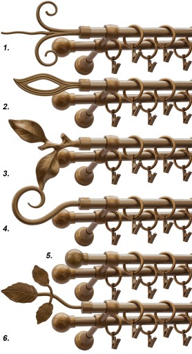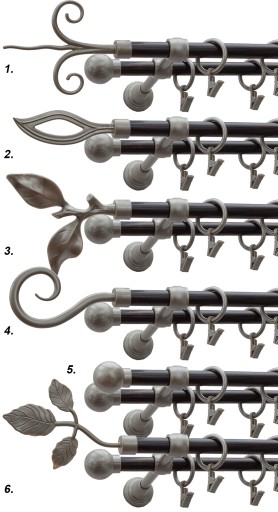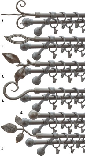 Poniżej kolorystyka karniszy oraz modele zakończeń do wyboru