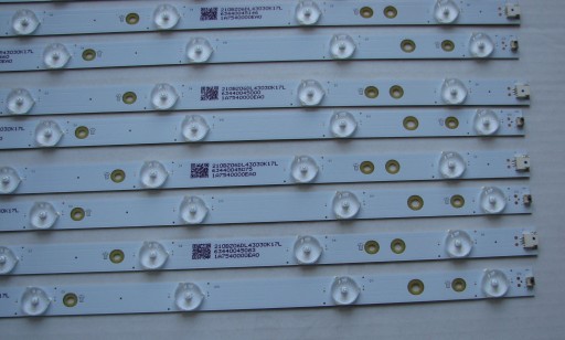 Listwy 100% sprawne i NOWE, nigdy nie używane - listwy z miedzianym spodem. Razem 7 całych pasków (14 odcinków łączonych, 7xL + 7xR, 12 diod na pasku / 6+6) Pasują do wielu modeli Philipsa. Współpracują najczęściej z panelem TPT490U2-EQYSHM.G REV:SC1L, TPT490U2-EQLSJA.G, TPT490U2-EQYSHM.G REV:SC1G itp.