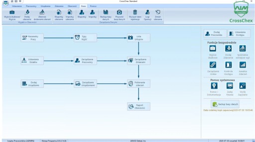 Wbudowany web serwer pozwala na konfiguracje urządzenia z poziomu komputera, bez potrzeby podłączania rejestratora i instalowania dodatkowych programów. Do zaawansowanej konfiguracji urządzenia oraz prowadzenia raportów polecamy program CrossChex Standard. Program dostępny w całości w języku polskim.