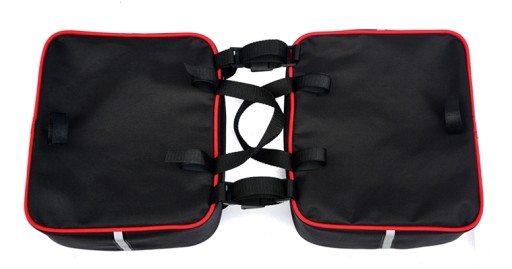 - Torba mocowana do bagażnika paskami z plastikowymi uchwytami oraz rzepem.