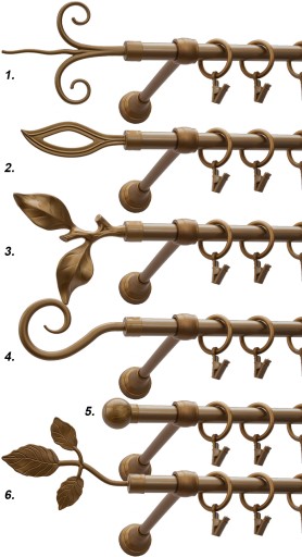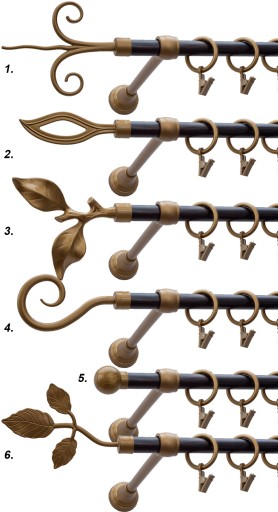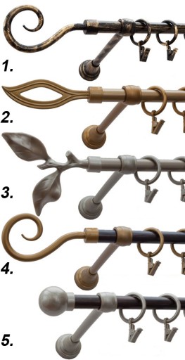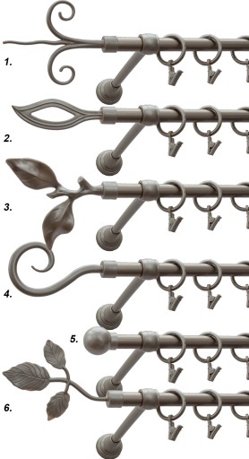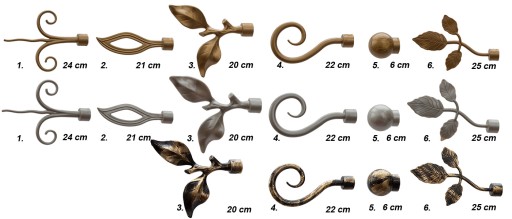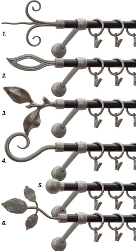 Poniżej kolorystyka karniszy oraz modele zakończeń do wyboru