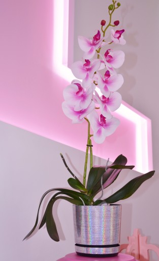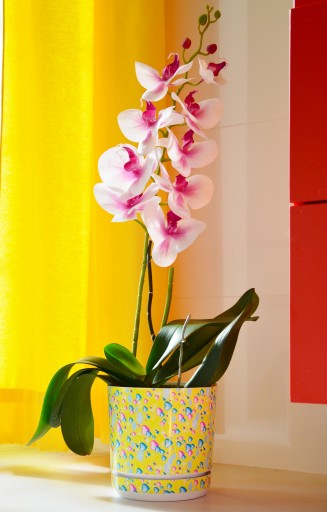 Wzory doniczek fluo pięknie współgrają z kwiatem Orchidea (Storczyk) czy wrzosem (na fot.). Można w nich również hodować swoje ulubione zioła lub kwiatki.