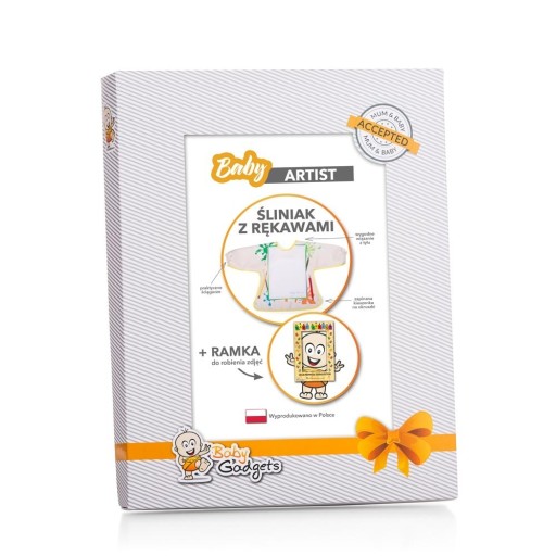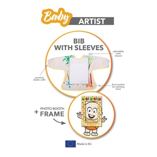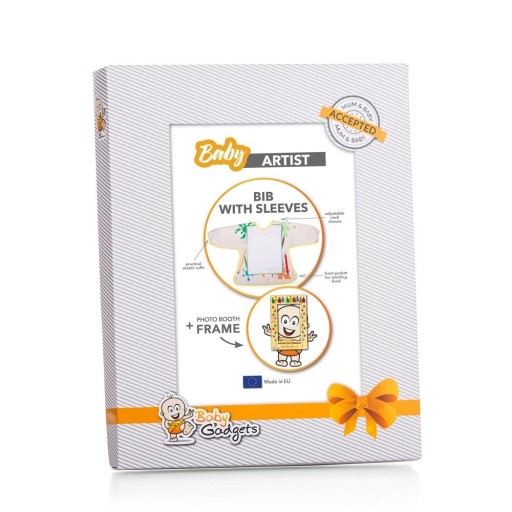 - Zawartość zestawu: śliniak z rękawami oraz papierowa ramka do robienia zdjęć