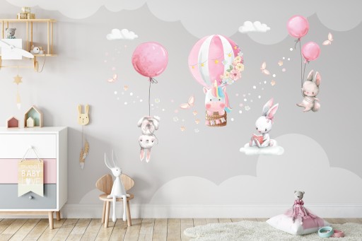 НАКЛЕЙКИ НА НАСТЕНУ С ЗАЙЧИКАМИ ШАРИКИ 50x100см