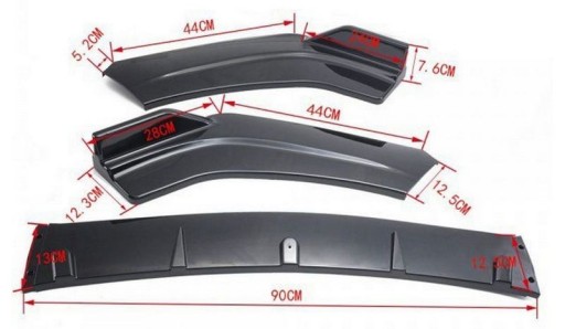 Uniwersalne lotki dokładki przedniego zderzaka. Nadają samochodowi bardziej agresywny wygląd.
