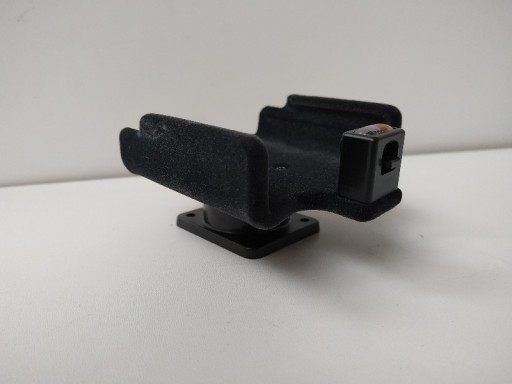 - Uchwyt został wykonany z tworzywa ABS w kolorze czarnym, które w trakcie kolizji samochodu nie łamie się na drobne, niebezpieczne kawałki.