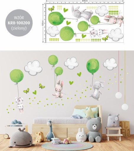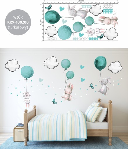 НАКЛЕЙКИ НА НАСТЕНУ С ЗАЙЧИКАМИ ШАРИКИ 100х200см