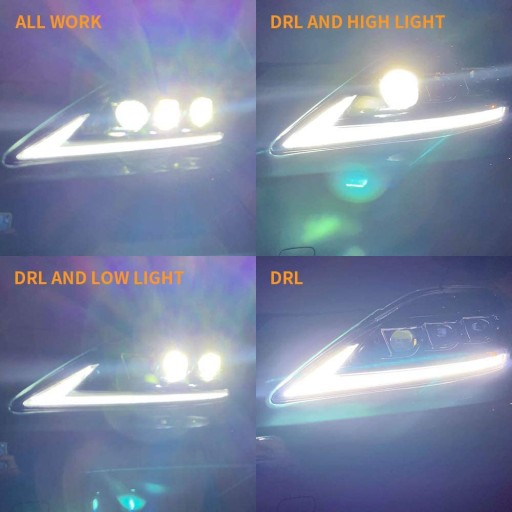 - Światła mijania: światło mijania [4 diody LED] jest trzy razy jaśniejsze niż oryginalny, nowy modny projektor. Lepszy wzór światła niż w przypadku tradycyjnych kryształowych reflektorów