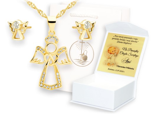 Piękny symboliczny Srebrny Złocony Naszyjnik z Aniołkiem Stróżem oraz kolczyki w kształcie aniołków.