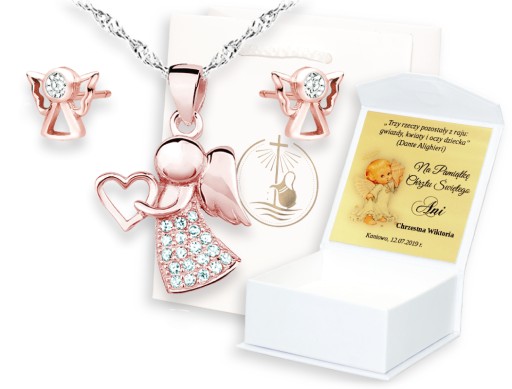ZESTAW ANIOŁEK Z CYRKONIAMI NA ŁAŃCUSZKU z KOLCZYKAMI