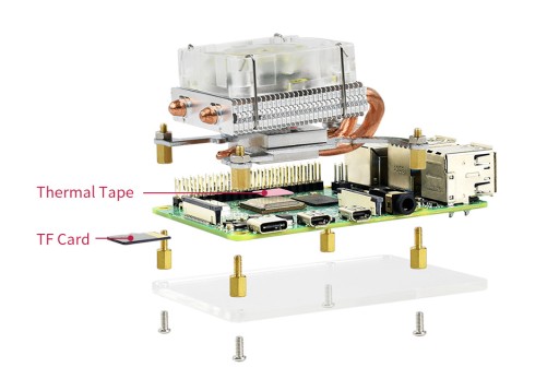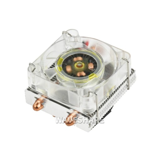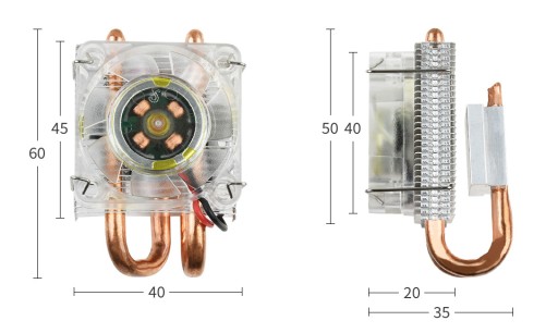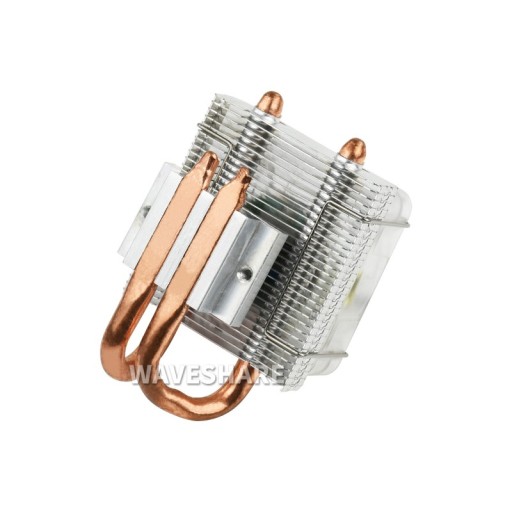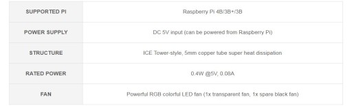 Ten bardzo wydajny radiator powstał w celu rozwiązania problemów odprowadzania ciepła z Raspberry Pi. Konstrukcja wieży chłodzącej zawiera 5mm rurki miedziane, wielowarstwowy radiator aluminiowy oraz siedmiołopatkowy wentylator. Konstrukcja ta pozwala obniżyć temperaturę procesora z 80℃ do 40℃. Dzięki temu chłodzeniu malina może osiągnąć maksymalne swoje parametry. Dzięki wielokolorowemu podświetleniu nasza malina będzie wyglądać znacznie lepiej.