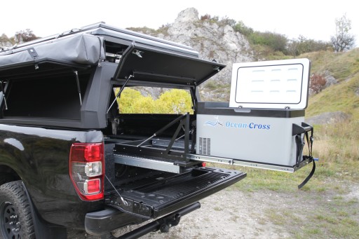 Nasze szuflady w wersji do pickupów na górze platformy mają listwę kotwiczną, do której z łatwością solidnie przymocujesz lodówkę lub inny ładunek.
