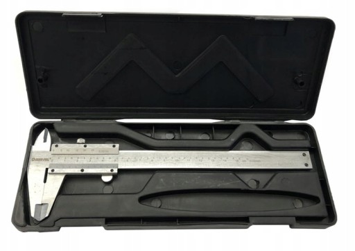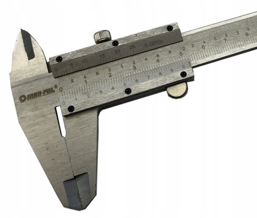 Tradycyjna, analogowa suwmiarka posiada zakres pomiaru do 150 mm co przekłada się na 6". Dokładność do 0,02 mm.