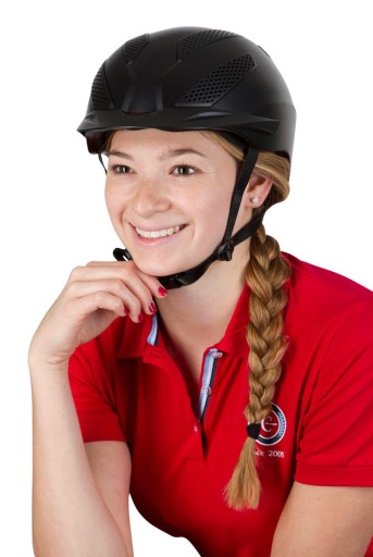 Wysokiej jakości kask jeździecki z konstrukcją in-mold, doskonałym dopasowaniem i sześcioma otworami wentylacyjnymi zapewniającymi doskonały komfort pod kaskiem. Kask jeździecki eXite zachwyca niską wagą i opływową konstrukcją.